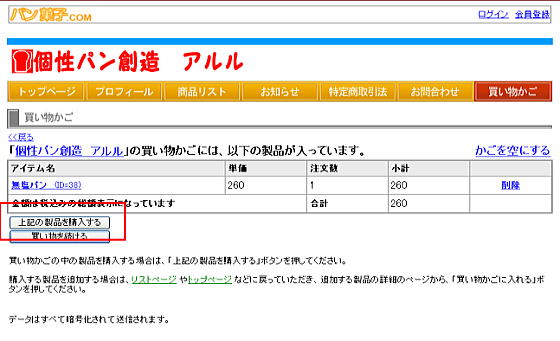 ■買い物かごの画面が表示されたら(図2)、「上記の製品を購入する」のボタンを押すと、購入者の名前や住所、お届け先の住所など必要事項を入力する画面が表示されます。(図3)